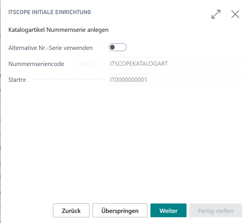 | Alternative Nr.-Serie verwenden | Auswählen, ob eine abweichende Nummernserie für die durch ITscope importierte Katalogartikel verwendet werden soll. |