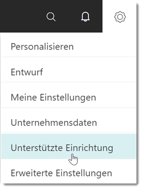Das ITscope Modul unterstützt Sie bei der einmaligen Initialen Einrichtung. Sie erreichen die Unterstütze Einrichtung über das Zahnradsymbol in der rechten oberen Ecke. Wählen Sie in der Auflistung den Menüpunkt „Mit ITscope verbinden“, um die Einrichtung zu starten.
