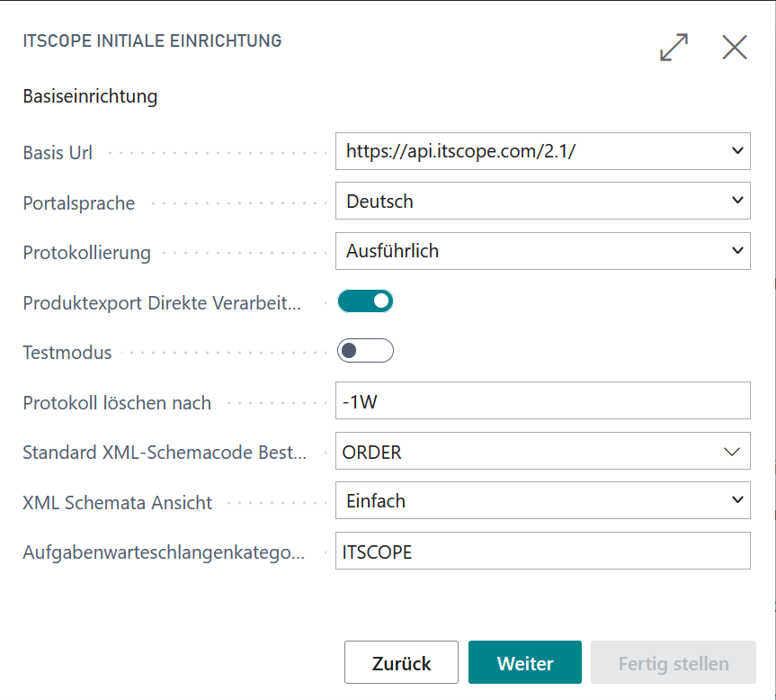 | Daten von ITscope abrufen | Die ITscope Daten (Lieferanten, Hersteller und Artikelkategorien) werden abgerufen und in Ihrem System gespeichert. Diese Funktion konnte einige Zeit in Anspruch nehmen. |